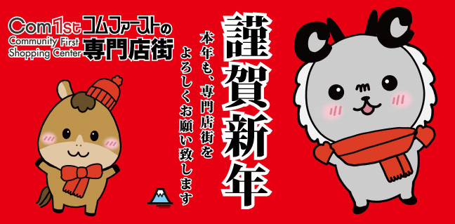 コムファーストの専門店街は 12月31日と1月1日は誠に勝手ながら営業時間を 10:00~18:30 とさせていただきます