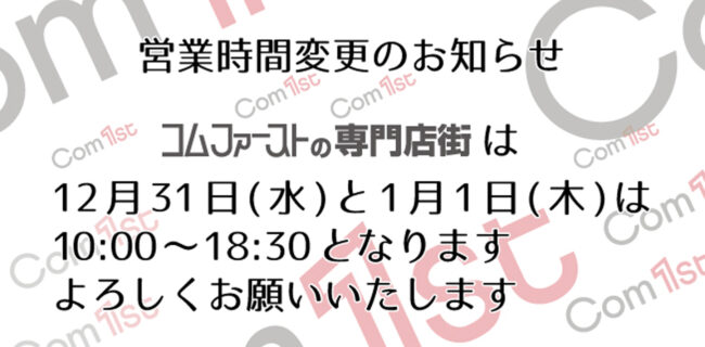 12月31日と1月1日は誠に勝手ながら営業時間を